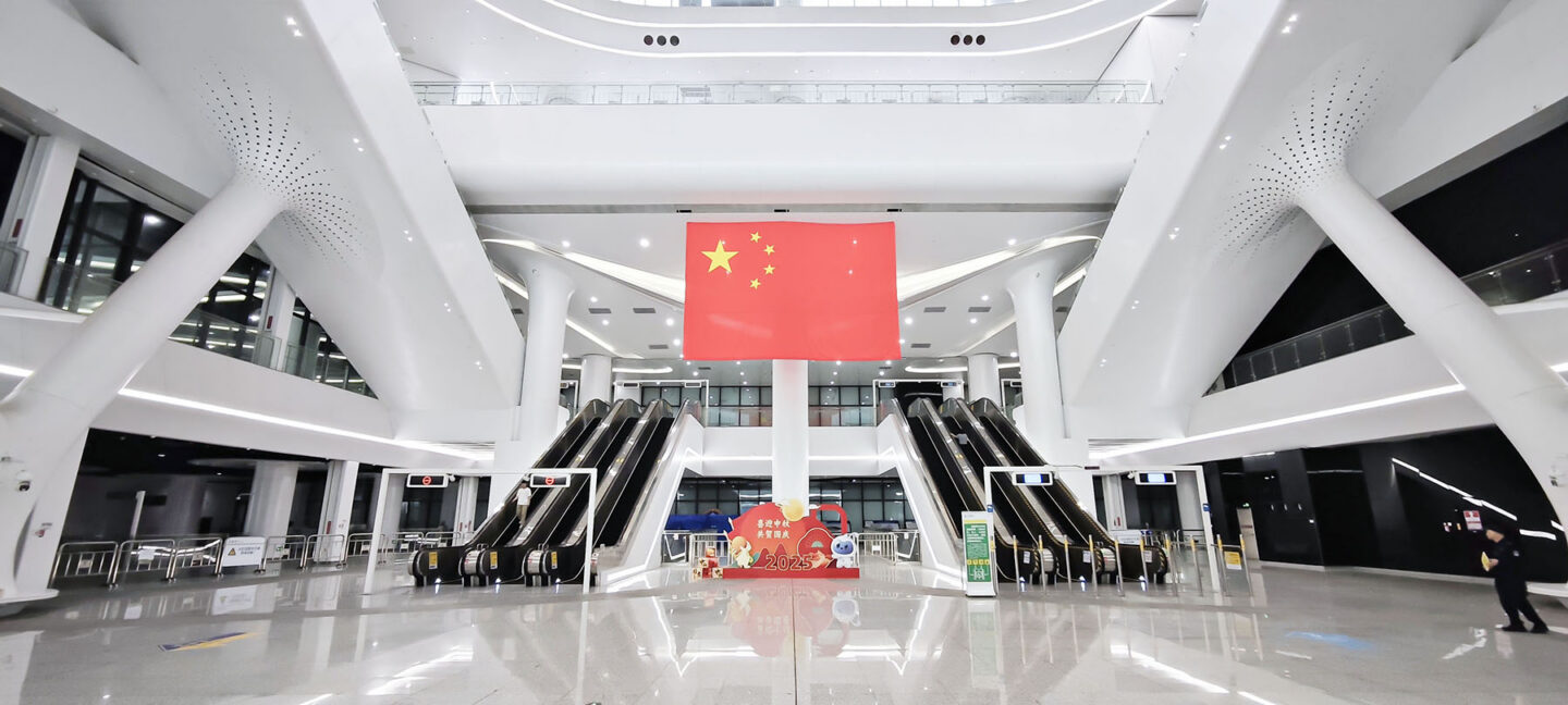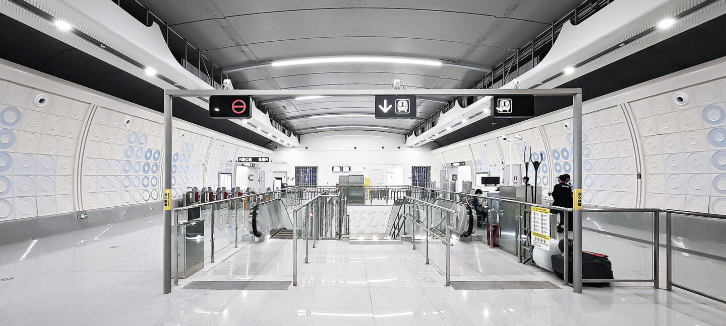 福坑站(太空之城)沉浸式设计:无人机造型与装配式构件呼应,形成科技艺术交融的空间。