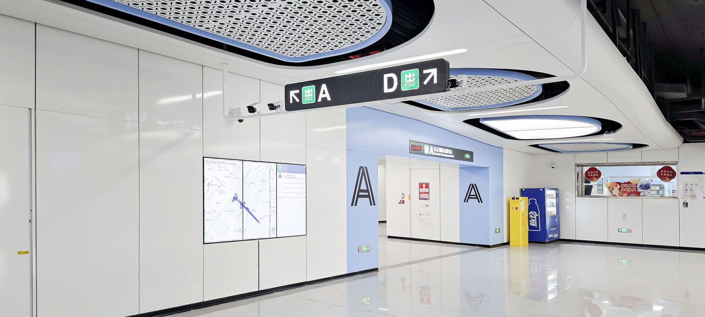 吉溪站定位为“新居”,以科技感蓝色为核心视觉语言,打造简洁、未来感的空间体验。