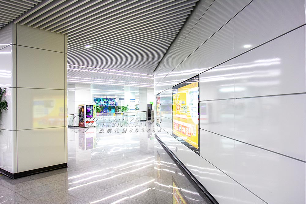 枢纽中心采用了大量的白色搪瓷钢板装饰的墙身和柱面,采用横向比例的板块分隔,彰显空间的纵深感和空间感,搪瓷钢板特有的漫反射光泽最大限度的增加空间的亮度和舒适度。